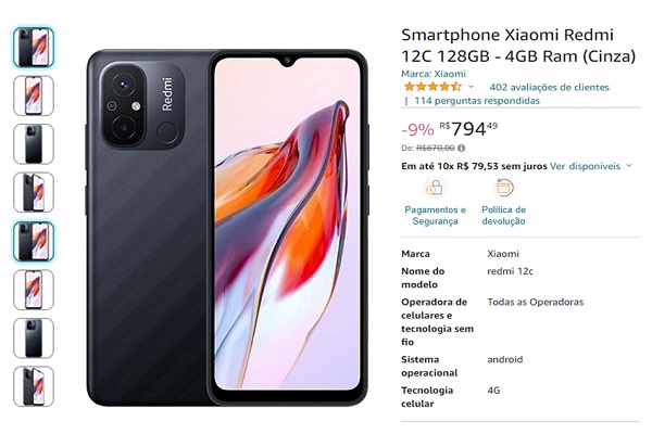 Smartphone Xiaomi Redmi Dual SIM 12C 128GB - 4GB Ram (Cinza).